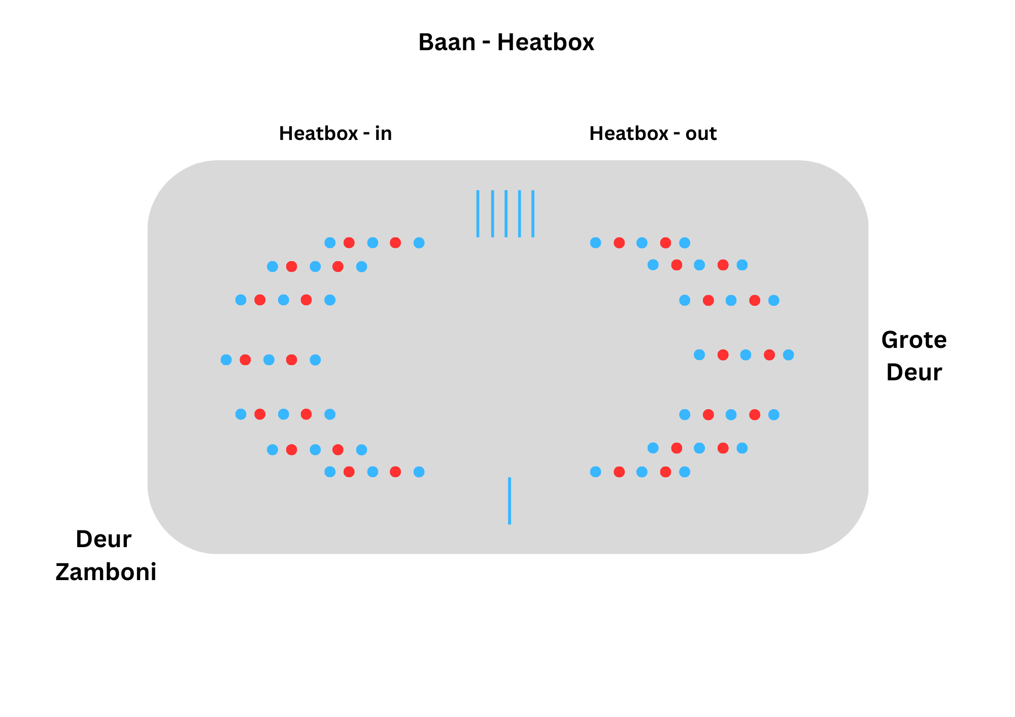 • Zodra iedereen van jouw groep geweest is geven de begeleiders aan dat jullie van het ijs mogen, dit gaat via de andere heatbox (heatbox-out in de afbeelding).