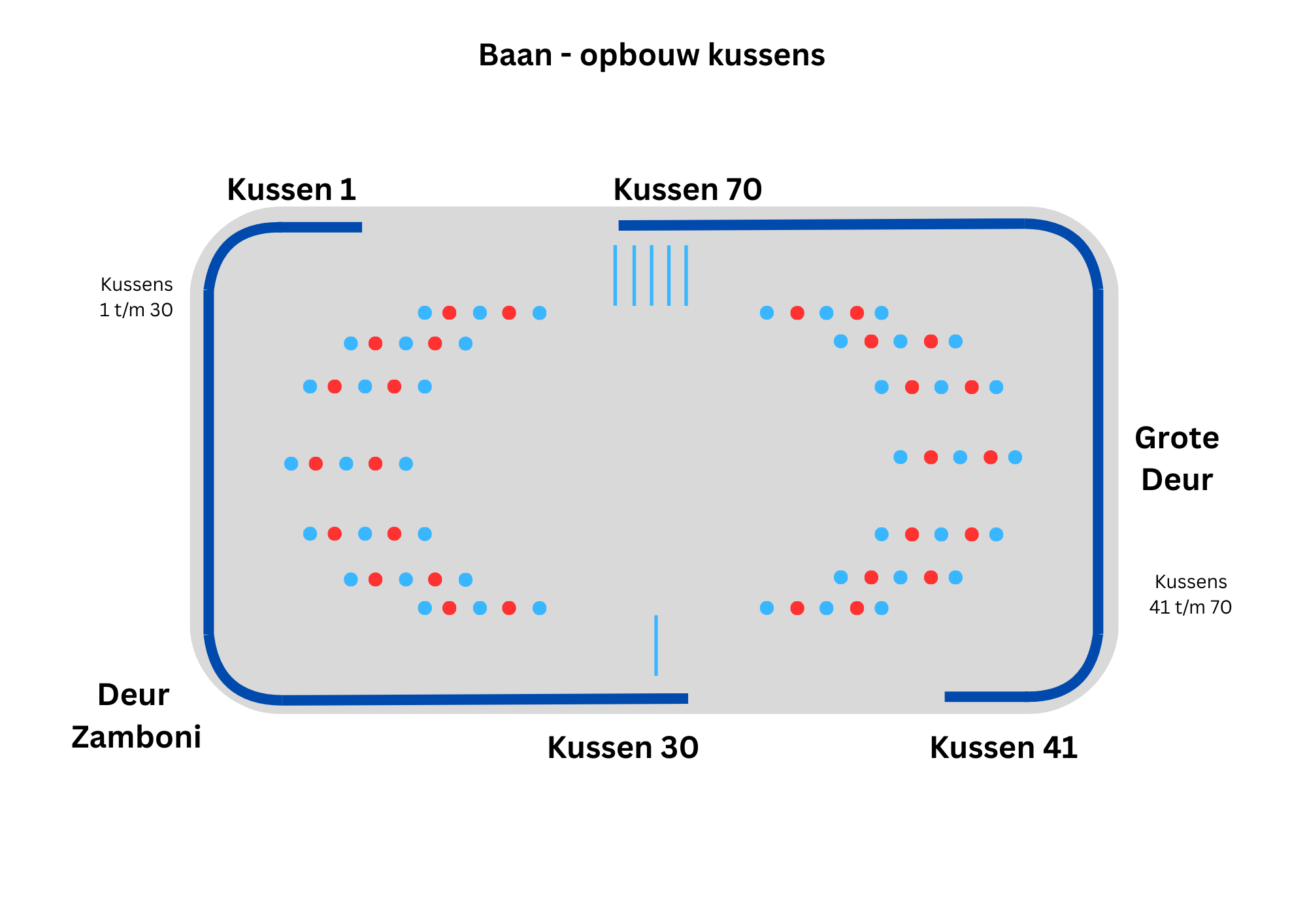 • We willen de ouders vragen om te helpen met het plaatsen van de kussens, om 12.40 uur is er instructie over het plaatsen op het middenterrein bij de Zamboni. Zodra de kussens staan wordt er gedweild en kunnen de kinderen alvast hun schaatsen aantrekken.
